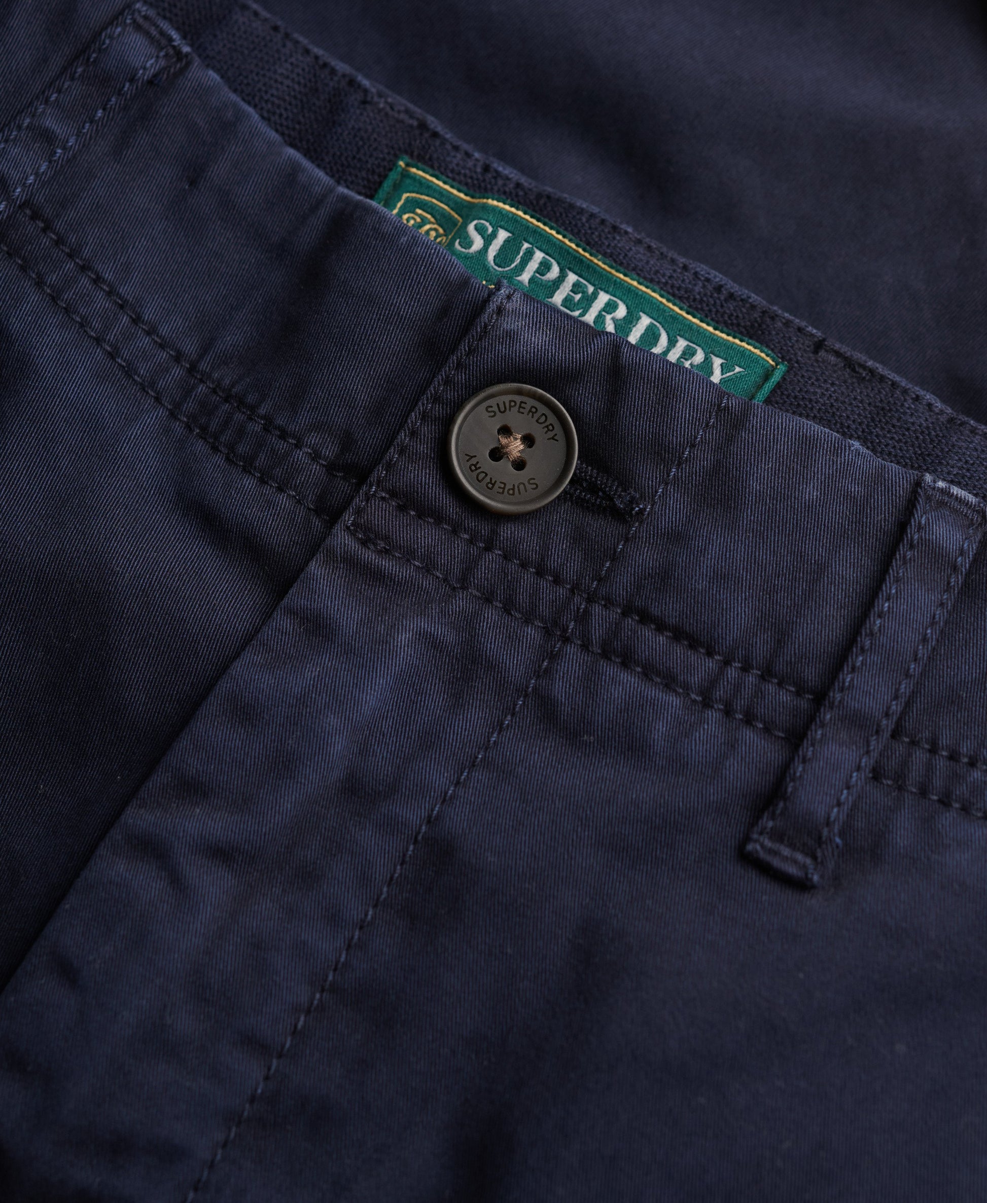 Relaxed fit – de klassieke Superdry-pasvorm. Niet te strak, niet te los, precies goed. Kies je normale maat. Sluiting met knoop en rits. Riemlussen. Ontwerp met vier zakken. Klein kenmerkend label op de achterzak.