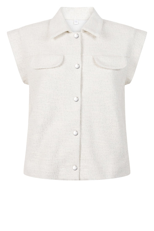 De Jacket Josine Offwhite 251 van het merk Zoso is een stijlvolle mouwloze jas, perfect voor het voorjaar of als laagje over een outfit. Uitgevoerd in een zachte offwhite tint, heeft deze jas een moderne en elegante uitstraling.