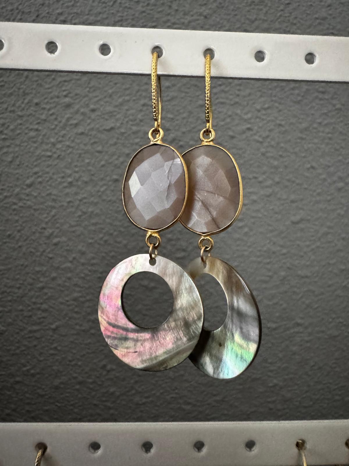 Deze oorbellen combineren een beige Cateye steen met een glanzende parelmoer schelp. Ze roepen direct het gevoel op van warme stranden en zwoele avonden.